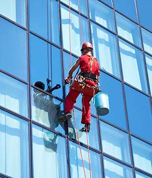 Альпинистами компании осуществляется мытье фасадов зданий, окон после ремонта с помощью различных современных средств: