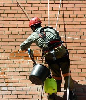 Мойка, уборка фасадов и удаление стойких загрязнений на высоте без лестниц осуществляется только промышленными альпинистами. Альпинизм – это задача для квалифицированных специалистов, имеющих допуск для работы на высоте. Они умеют пользоваться системами креплений и готовы к внештатным ситуациям. Категорически запрещено выполнять работы по мойке, уборке фасадов на высоте силами других специалистов. Это обусловлено необходимостью соблюдения техники безопасности. Если пренебречь промышленными альпинистами, то это чревато определенными последствиями: